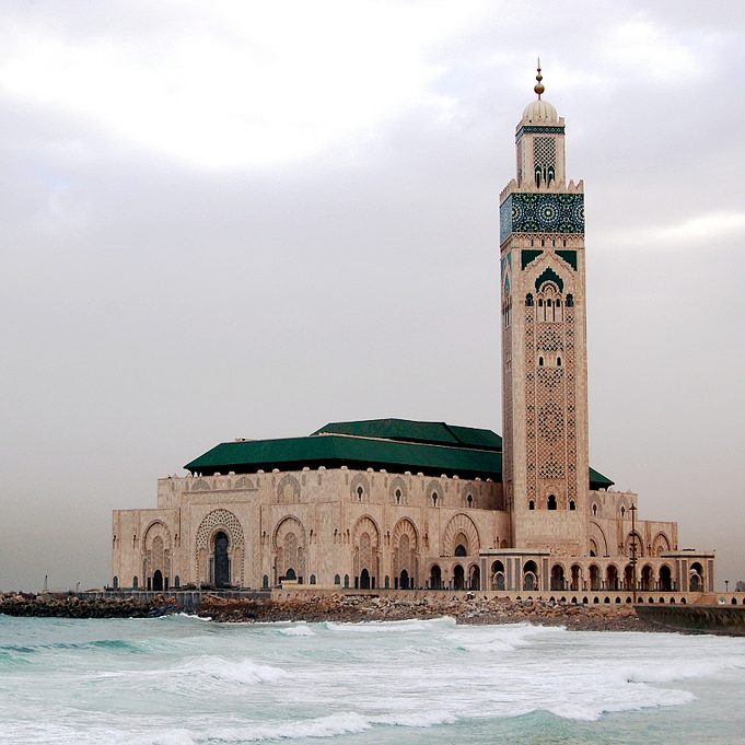 Mezquita Hassan II, una de las más grandes del mundo, situada frente al océano Atlántico.