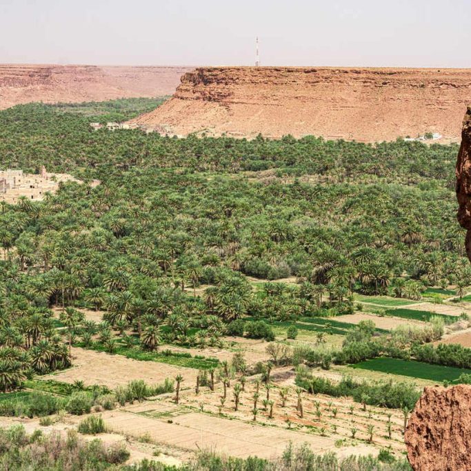 El paisaje se abre y aparece el Valle del Ziz, un mar de palmeras en medio de la nada.