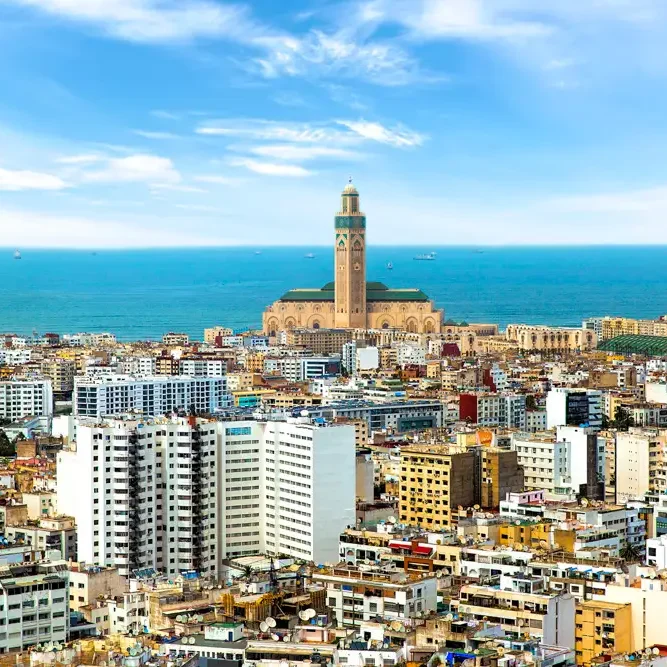 Casablanca no intenta impresionar… simplemente sucede. Es la puerta moderna de Marruecos, una ciudad viva, real, donde África mira al océano.